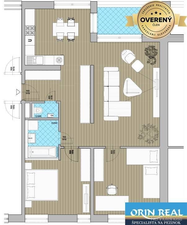 Ponúkame na predaj priestranné 3 izb.byt v Pezinku v novom komplexe VINICE 88.80 m2 čistej výmery+Logia-7,38+komora-4,10 m2